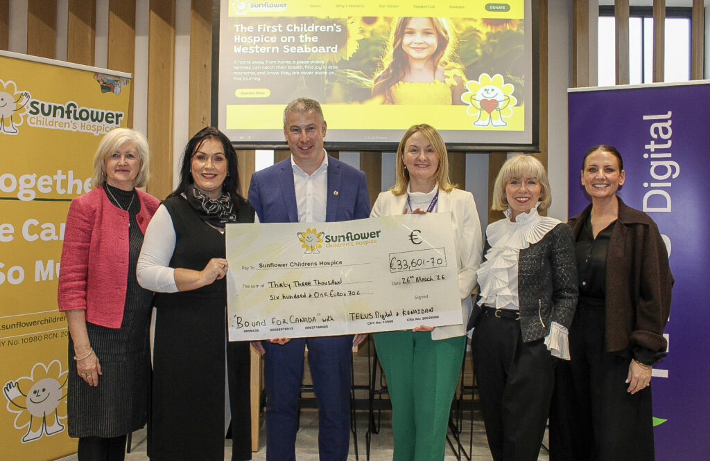 An incredible €33,601.70 has been raised for the Sunflower Children’s Hospice project, in an initiative by Mayo County Council in collaboration with TELUS Digital, Ballina and Kenaidan Contractors Ltd. Collectively, between a Bound for Canada musical event over two nights, a charity raffle, and a table quiz, the organisers exceeded all expectations.